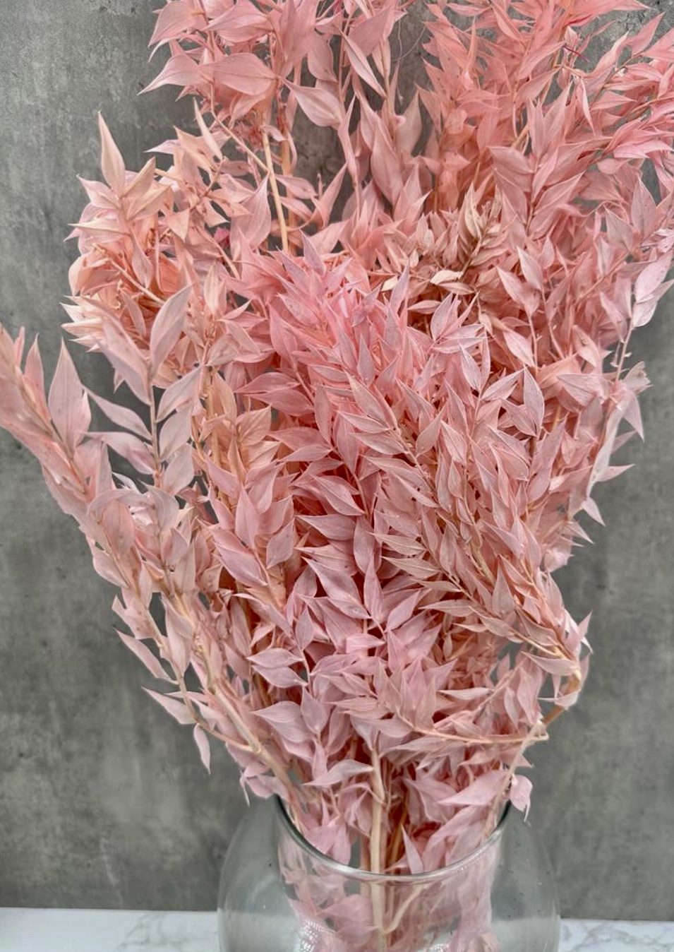 El ruscus rosa preservado es una opción encantadora para quienes buscan añadir un toque de color y frescura a su decoración. Este ruscus ha sido sometido a un cuidadoso proceso de preservación, lo que le permite mantener su belleza y vibrante tonalidad rosa durante mucho tiempo. Con su apariencia delicada y su textura única, el ruscus rosa es ideal para crear arreglos florales, ramos o como acento decorativo en cualquier espacio.